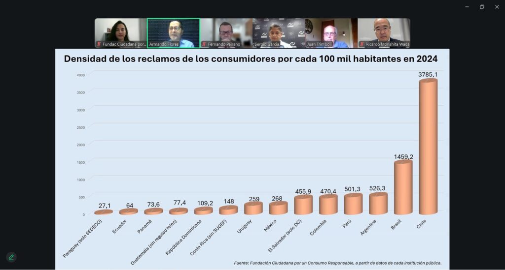 También entregó datos sobre la tasa de resolución de los reclamos en forma favorable a los intereses de los consumidores y destacó que la principal novedad de este análisis es el cálculo de la densidad de reclamos de los consumidores, determinándose que, en el año 2024, Paraguay y Chile son los países con menor y mayor cantidad de denuncias por cada 100 mil habitantes, respectivamente.